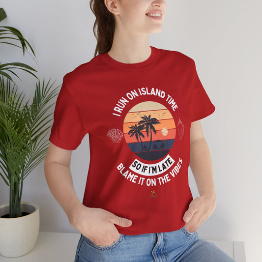 I Run On Island Time So If I'm Late Blame It On the Vibes | White Text | Red