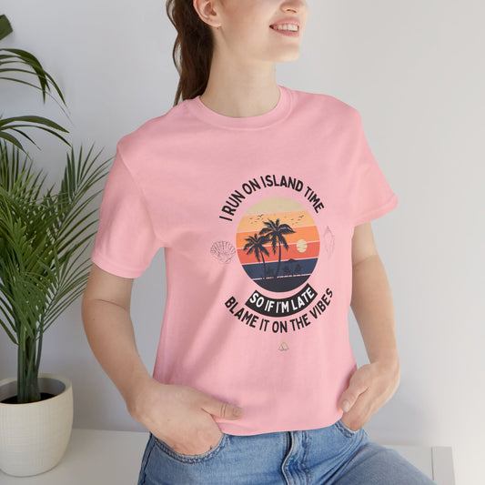 I Run On Island Time So I'f I'm Late Blame It On the Vibes | Black Text | Pink